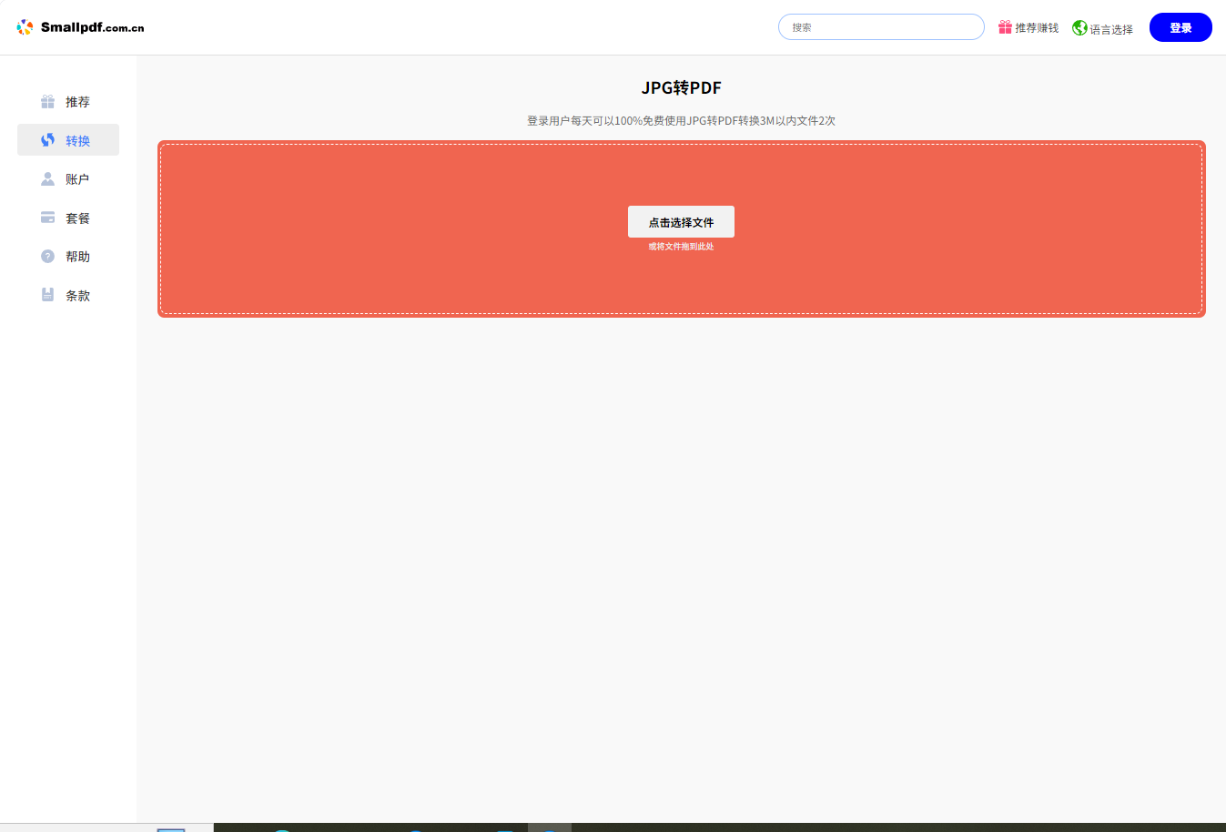 第一步:訪問(wèn)Smallpdf網(wǎng)站,點(diǎn)擊“JPG to PDF”按鈕。?