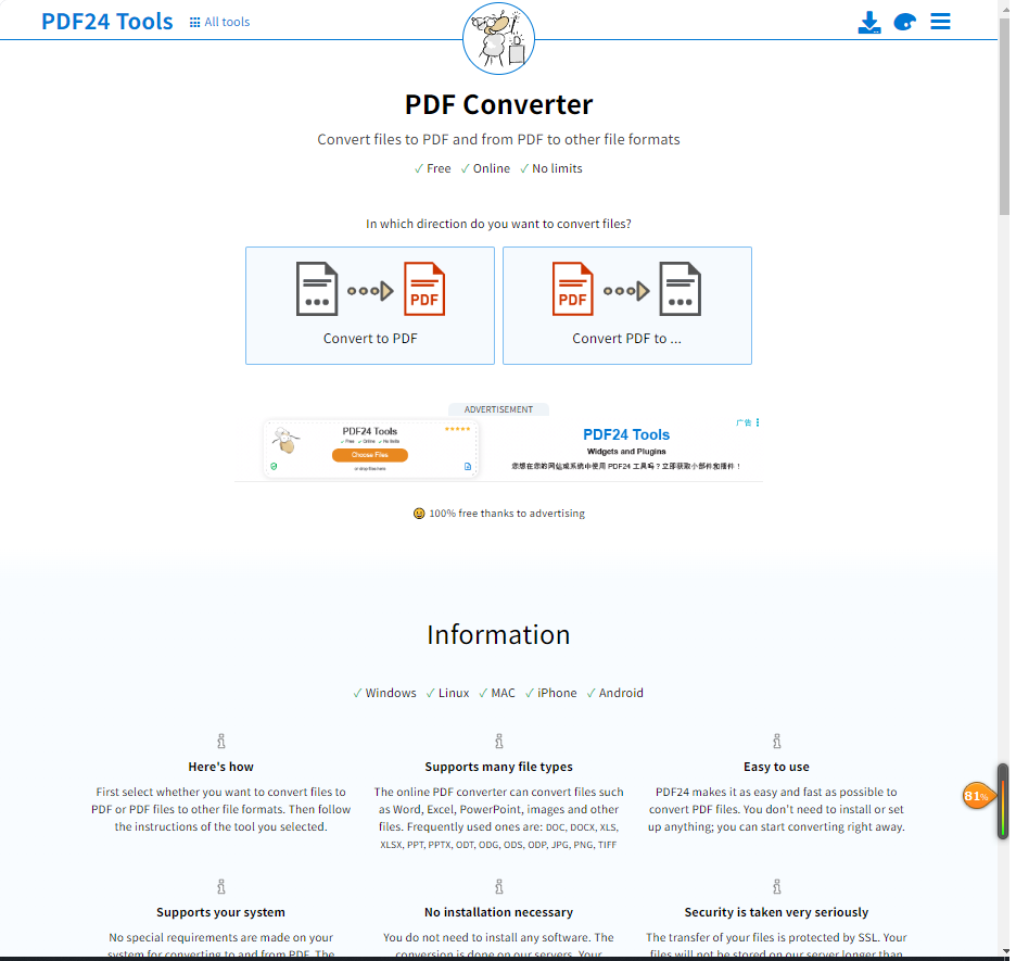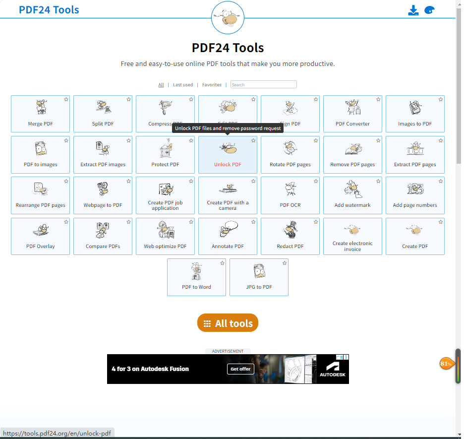 第一步:打開(kāi)PDF24 Tools官網(wǎng),找到“PDF to CAD”功能入口。?