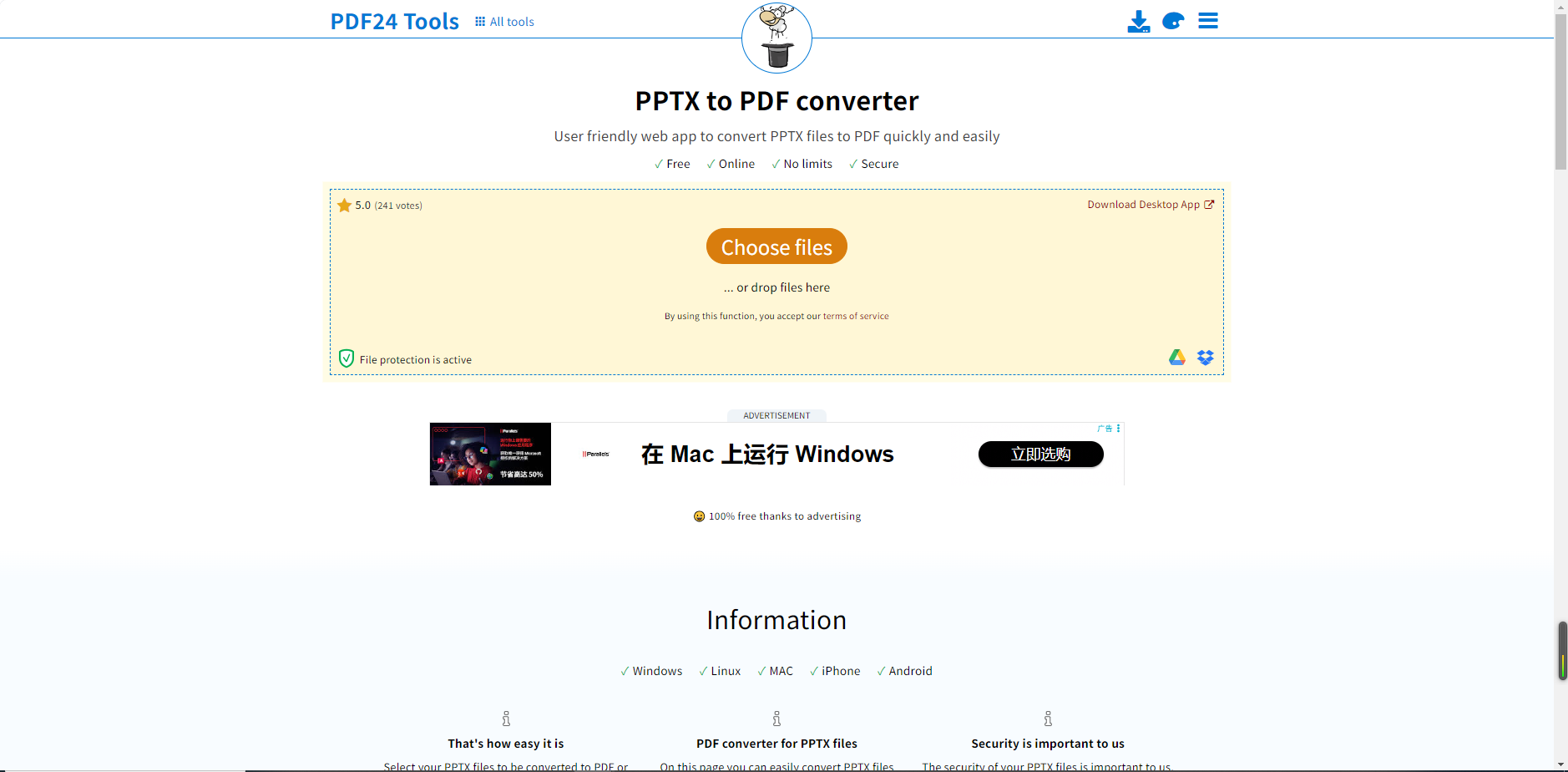 所有功能完全免費(fèi),不用注冊登錄,打開瀏覽器就能用,對臨時(shí)有轉(zhuǎn)換需求的人太友好。針對PPT轉(zhuǎn)PDF優(yōu)化了專用算法,能精準(zhǔn)保留原文件的動(dòng)畫效果、字體樣式和圖文排版,就算帶復(fù)雜圖表也不會(huì)錯(cuò)位。支持批量上傳多個(gè)文件同時(shí)轉(zhuǎn)換,還能順手給PDF加頁碼、加密,一站式搞定后續(xù)處理??缙脚_(tái)兼容Windows、Mac、Linux,界面無廣告,轉(zhuǎn)換速度快,幾十兆的PPT也能秒處理。